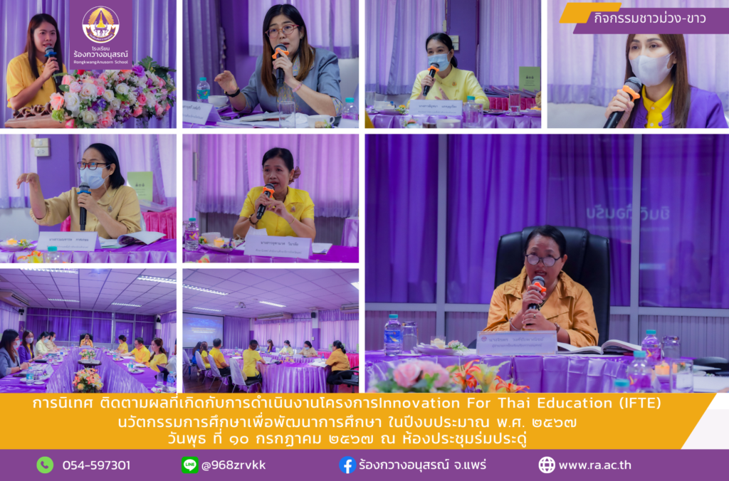 การนิเทศ ติดตามผลที่เกิดกับการดำเนินงานโครงการInnovation For Thai Education(IFTE) นวัตกรรมการศึกษาเพื่อพัฒนาการศึกษาในปีงบประมาณ2567 กิจกรรม ม่วง-ขาว / By ra / 10 กรกฎาคม 2024 คลิกชมภาพกิจกรรม